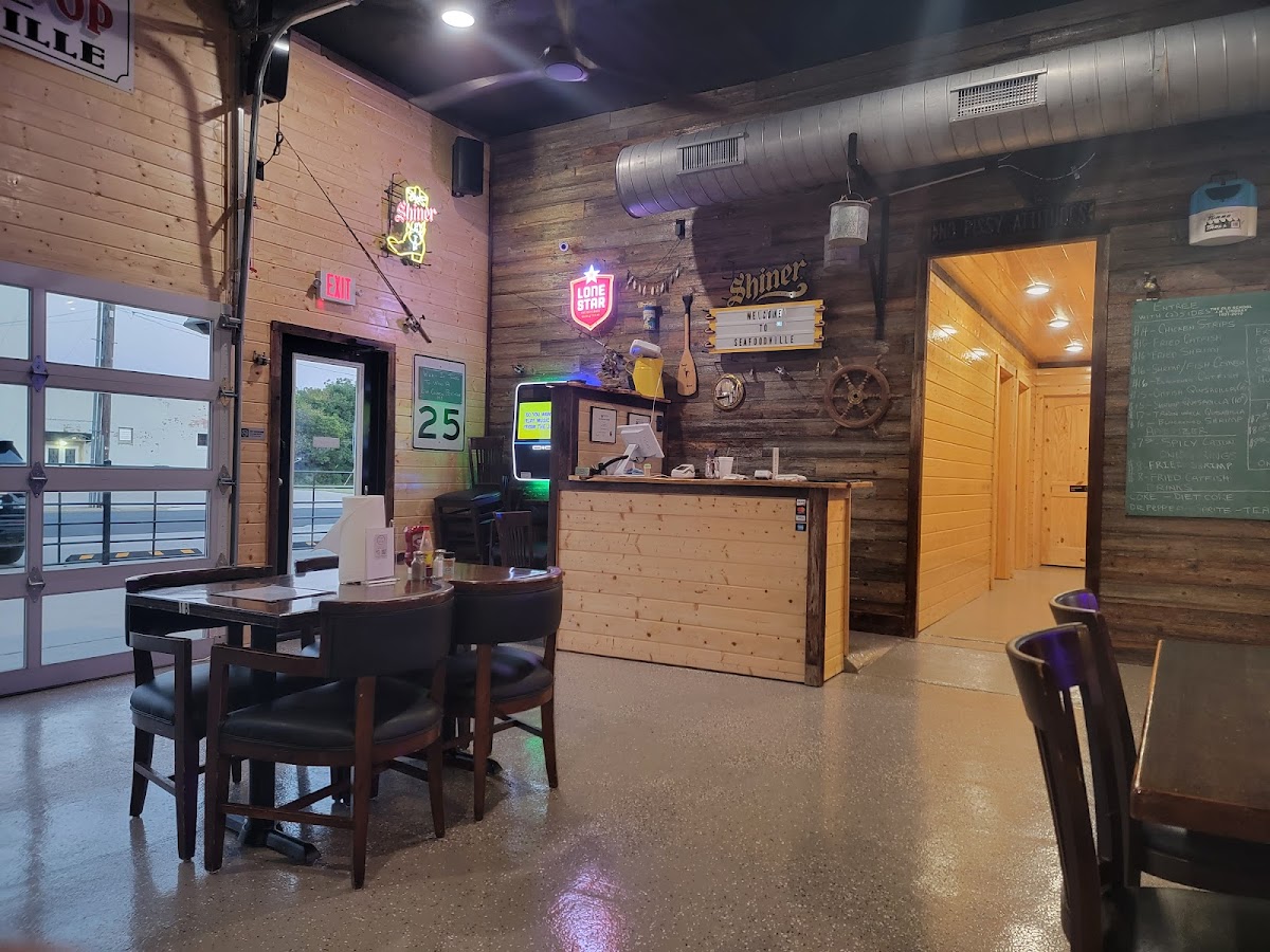 Walking into Seafoodville, you immediately notice the relaxed, welcoming atmosphere. Whether you're grabbing a quick bite with friends or sitting down for a cozy family dinner, this diner-style seafood spot has something for everyone. The interior features casual seating with a touch of nautical decor, giving it a charming coastal vibe that's perfect for seafood lovers.